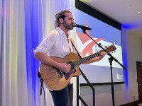 BMI’s Jon Miller, Goodness Victor (Spotify Songwriters) and BMI’s Anu Gantumur at BMI London’s holiday mixer. View Photo