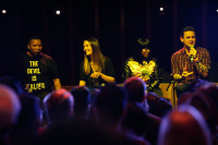 (L-R) DJ Mannie Fresh, Songwriter/Artist Natalie Hemby, Songwriter/Artist Ester Dean and Songwriter David Hodges speak onstage during BMI How I Wrote That Song at 1OAK on February 7, 2015 in West Hollywood, California. View Photo