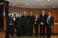 Pictured with the judges are students from Seton Hall University School of Law and University of California Hastings College of the Law, the first and second place winners of the 30th Annual Cardozo/BMI Entertainment and Communications Law Moot Court Competition. L-R: Jon Weisbrod (Seton Hall), Ashleigh Lewis (Seton Hall), Judge Roslynn Mauskopf (Eastern Dist. of NY), Judge David Hamilton (7th… View Photo