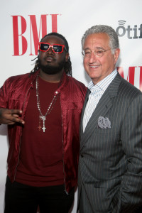 Rapper T-Pain (L) and BMI president and chief executive officer Del Bryant arrive at the 2012 BMI Urban Awards honoring Mariah Carey at the Saban Theatre on September 7, 2012 in Beverly Hills, California. View Photo