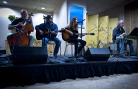 Matraca Berg (second from right) is joined by David Henry, Nitty Gritty Dirt Band’s Jeff Hanna and Dan Dugmore for a performance at BMI’s party celebrating the release of Berg’s The Dreaming Fields. View Photo