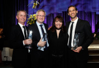 BEVERLY HILLS, CA - MAY 18: (L-R) Award recipients Blake Neely, Paul Haslinger, BMI Vice President of Film and Television Relations Doreen Ringer Ross and Rob Simonsen pose at the 2011 BMI Film And TV Awards at the Beverly Wilshire Four Seasons Hotel on May 18, 2011 in Beverly Hills, California. View Photo