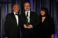 BEVERLY HILLS, CA - MAY 18: (L-R) BMI President and Chief Executive Officer Del Bryant, BMI Richard Kirk Award recipient David Arnold and BMI Vice President of Film and Television Relations Doreen Ringer Ross pose onstage at the 2011 BMI Film And TV Awards at the Beverly Wilshire Four Seasons Hotel on May 18, 2011 in Beverly Hills, California. View Photo