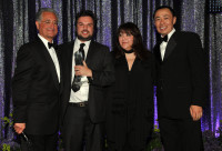 BEVERLY HILLS, CA - MAY 18: (L-R) BMI President and Chief Executive Officer Del Bryant, award recipient Brian Tyler, BMI Vice President of Film and Television Relations Doreen Ringer Ross and Executive Director of Film/TV Relations Ray Yee pose onstage at the 2011 BMI Film And TV Awards at the Beverly Wilshire Four Seasons Hotel on May 18, 2011 in… View Photo