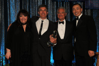 BEVERLY HILLS, CA - MAY 18: BMI Vice President of Film and Television Relations Doreen Ringer Ross, award recipient Brian Kirk, BMI President and Chief Executive Officer Del Bryant and Executive Director of Film/TV Relations Ray Yee pose onstage at the 2011 BMI Film And TV Awards at the Beverly Wilshire Four Seasons Hotel on May 18, 2011 in Beverly… View Photo