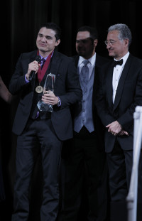 Eleven young classical composers were named winners at the 59th Annual BMI Student Composer Awards, held May 13 at the Jumeirah Essex House Hotel in New York City. Pictured at the event are David Werfelmann; Jonathan L. Posthuma; David Hertzberg; Ryan Chase; Eric Guinivan; BMI Foundation, Inc. President Ralph Jackson; Mena Mark Hanna; Francisco Castillo Trigueros; Yeeren I. Low; William… View Photo