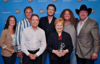 Co-writer John Wiggins (far right) thanks everyone at the “Who Are You When I’m Not Looking” #1 party. Also pictured are Blake Shelton, Notewrite Music’s Pauline Andrews, co-writer Bud Lee, and producer Scott Hendricks. View Photo