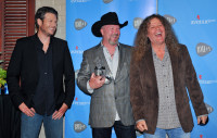 Pictured at the “Who Are You When I’m Not Looking” #1 party are Blake Shelton, and co-writers John Wiggins and Bud Lee. View Photo