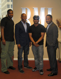 Pictured at CyHi’s BMI signing are manager Mike Davis, attorney Donald Woodard, CyHi da Prynce and BMI’s Byron Wright. View Photo