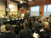 BMI recently orchestrated an informative “Music 101: TV & Film” panel for composers and songwriters at the Gibson Showroom in Beverly Hills. Panelists included Dave Stone, VP of Music Development, Bunim/Murray Productions; Wende Crowley, VP of Film & TV at Sony/ATV Music Publishing; music supervisors Dave Jordan and Julianne Jordan; film and television composer Derryck “Big Tank” Thorton; and BMI’s… View Photo