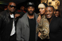 Devyne Stephens, Polow Da Don, Keri Hilson and Timothy Bloom pause for a photo at the BMI-sponsored Symmetry Live event, held March 17 at the W Atlanta – Downtown. View Photo