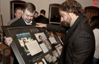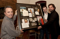 EMI Music Publishing’s Ben Vaughn presents Dallas Davidson with a plaque celebrating his 5 #1s last year. View Photo