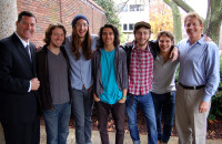 The Kingston Springs recently joined BMI’s family of songwriters. Named after the 17- and 18-year-old band members’ Tennessee hometown, the quartet has spent much of the past year lighting up tastemaker radars thanks to their latest release The Vacation EP and slots at key events including the Starry Nights Music Festival. Pictured are BMI’s Mark Mason; Carl Gaddy; The Kingston… View Photo