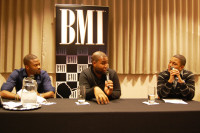 BMI’s Wardell Malloy (l) and Ian Holder (r) flank songwriter Claude Kelly at “BMI Presents: A Conversation with Claude Kelly,” held in New York on November 18. View Photo