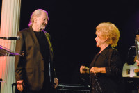 Willie Nelson accepts his 2010 Leadership Music Dale Franklin Award from Brenda Lee. View Photo