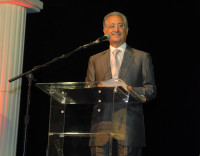 BMI President & CEO Del Bryant pays tribute to Fred Foster during the 2010 Leadership Music Dale Franklin Award gala. View Photo