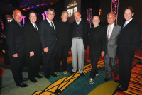 BMI congratulates the honorees at the 2010 Leadership Music Dale Franklin Awards: Pictured are BMI’s Tom Annastas, Jody Williams and Phil Graham; Kris Kristofferson; Fred Foster; Willie Nelson; BMI President & CEO Del Bryant; and BMI’s Clay Bradley. View Photo