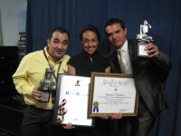 Editora Arpa Musical’s Alejandro Garza; Delia Orjuela, BMI Vice President, Writer/Publisher Relations, Latin; and BMI hit songwriter Horacio Palencia pause for a photo during monitorLATINO. BMI saluted Palencia with special honors recognizing his many contributions to Latin music, while monitorLATINO named him Compositor del año (Composer of the Year). View Photo