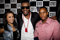 BMI’s Know Them Now showcase performers Ginette Claudette, Kevin Cossom and Vaughn Anthony pause for a photo August 4 in New York. View Photo