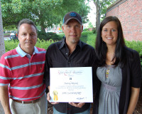 BMI recently presented songwriter Danny Myrick a Million-Air certificate celebrating his hit “She’s Country,” co-written with Bridgette Tatum and performed by Jason Aldean. Released in late 2008, the anthemic “She’s Country” has reached the one million performance mark—the equivalent of 6.7 years of continuous play—with impressive alacrity. Pictured are BMI’s Jody Williams, Danny Myrick, and BMI’s Beth Mason Laird. View Photo