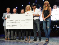 During the June 22 Nashville Rising benefit concert in Nashville, BMI presented a $50,000 donation to the Community Foundation of Middle Tennessee to assist with flood recovery work. Pictured at the presentation are (L-R) Del Bryant and Jody Williams of BMI, Community Foundation President Ellen Lehman, Faith Hill, Tim McGraw and emcee Nancy O’Dell. View Photo