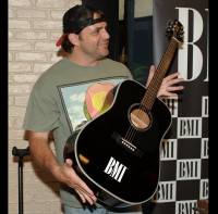 Co-writer Rhett Akins accepts his Takamine special edition BMI guitar at the “Gimmie That Girl” #1 party on June 14. View Photo