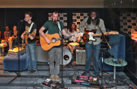 BMI’s April 22 installment of DRINKSHOP Live! at the downtown Atlanta W hotel featured lively performances by local acts Mat Musto, All Get Out, and Rocketboys. Pictured are Rocketboys’ Daniel Wheeler and Alex Bhore; BMI’s Byron Wright; Rocketboys’ Brandon Kinner, Josh Campbell, and Justin Wiseman; and BMI’s Liz Vangraafeiland. View Photo