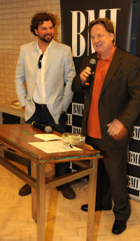 2009 BMI Songwriter of the Year Bobby Pinson celebrates with Dallas Davidson at the “That’s How Country Boys Roll” #1 party on Monday, March 23. View Photo