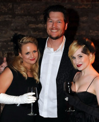 Blake Shelton (center) and Kellie Pickler (right) celebrate with Miranda Lambert (left) at the “White Liar” #1 party on Friday, February 26. View Photo