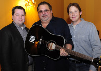 BMI’s Bradley Collins (left) and Clay Bradley (right) present a BMI guitar Bob DiPiero commemorating his chart-topper “Southern Voice". View Photo