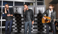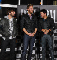 Dave Haywood, Charles Kelley, and Luke Bryan share a laugh at the “Do I” #1 party in Nashville. View Photo