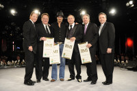 BMI's Clay Bradley, EMI's Gary Overton, BMI Country Award Winner Kid Rock, Universal Music's Pat Higdon, Warner Tamerlane's Scott Francis and BMI's Jody Williams at the 2009 BMI Country Awards, staged November 10 at the organization’s Music Row offices. View Photo