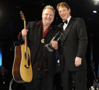 2009 BMI Country Songwriter of the Year Bobby Pinson shows off his new BMI signature Martin D-42 guitar at the BMI Country Awards, staged November 10 in Nashville. Pictured are (l-r): Bobby Pinson & BMI's Clay Bradley. View Photo