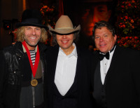 Pictured warming up inside at the cocktail party are (l to r): Big Kenny, Dwight Yoakam and BMI's David Preston. View Photo
