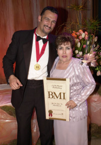 Doña Chuyita, mother of Banda El Recodo's Joel and Alfonso Lizarraga, with Kike Santander at the 2001 BMI Latin Awards. View Photo