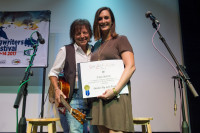 BMI’s MaryAnn Keen (R) presents Even Stevens a Million-Air award at the Tropic Cinema on Day 2 of the Key West Songwriters Festival on May 11, 2017, in Key West, FL. View Photo