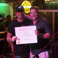 BMI’s Bradley Collins (R) presents Michael Ray a Million-Air Award at Cowboy Bills on Day 2 of the Key West Songwriters Festival on May 11, 2017, in Key West, FL. View Photo