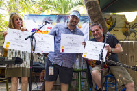Erika Wollam-Nichols, BMI’s Mason Hunter and Dylan Altman pose for a photo with Altman’s Million-Air Awards at Blue Heaven on Day 2 of the Key West Songwriters Festival on May 11, 2017, in Key West, FL. View Photo