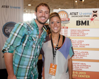 Drew Baldridge and BMI's Penny Everhard gather for a photo at the AT&T U-verse Stage in Music City Center during 2013 CMA Music Festival on June 6, 2013, in Nashville, TN. View Photo
