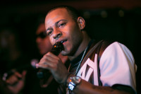 Eric Bellinger with 105.9 FM (Power 106) radio personality Yesi Ortiz, who introduced him before his set. View Photo