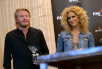 Little Big Town’s Phillip Sweet and Kimberly Schlapman at the “Tornado” No. 1 party on Monday, May 6. View Photo