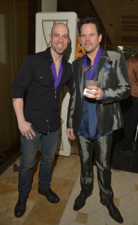 Chris Daughtry and Gary Allan share a moment during the cocktail hour. View Photo