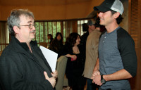CMA Close Up’s Bob Doerschuk chats with songwriter Granger Smith during a press luncheon held at BMI Nashville. View Photo