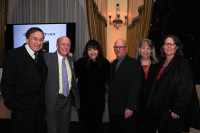 Pictured at the SCL Holiday Dinner are (l-r): BMI composer Richard Sherman, Mike Stoller, BMI’s Doreen Ringer Ross, BMI composer Mike Post, SCL’s Laura Dunn, and BMI’s Alison Smith. View Photo