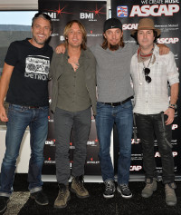 Co-writer Brett Warren, Keith Urban, co-writer Brad Warren and co-writer Kevin Rudolf join together for a photo after a riveting performance. View Photo
