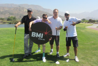 (L-R): Darrell Urias of Universal Music Publishing and composers Colton Fischer, Mike Baiardi and Arabian Nazel participate in BMI’s 4th annual golf tournament. View Photo