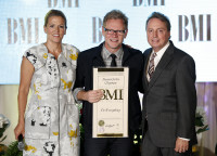 Steven Curtis Chapman hits the stage to receive an award for "Do Everything" during the 2013 BMI Christian Awards, held June 18 in Nashville. Pictured are (l-r): BMI's Leslie Roberts, Steven Curtis Chapman, and BMI's Jody Williams. View Photo