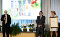 Industry veteran Jim Van Hook receives the Special Citation of Appreciation at the BMI Christian Awards, staged June 18 in Nashville. Pictured are (l-r): Jim Van Hook, and BMI's Jody Williams and Leslie Roberts. View Photo