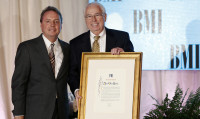 Industry veteran Jim Van Hook receives the Special Citation of Appreciation at the BMI Christian Awards, staged June 18 in Nashville. Pictured are (l-r): BMI's Jody Williams and Jim Van Hook. View Photo