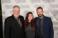 SCL President Ashley Irwin, BMI’s Anne Cecere and BMI composer and Golden Globe nominee Dustin O’Halloran pose for a photo during the SCL event. View Photo